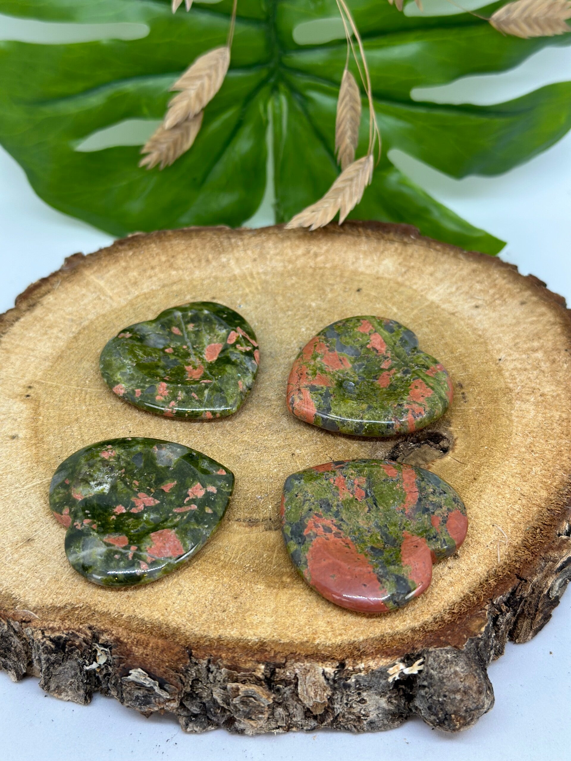 Hartvormige worrystone van Unakiet met uitsparing om je duim in te leggen, 4 centimeter lang. Willekeurig gekozen.