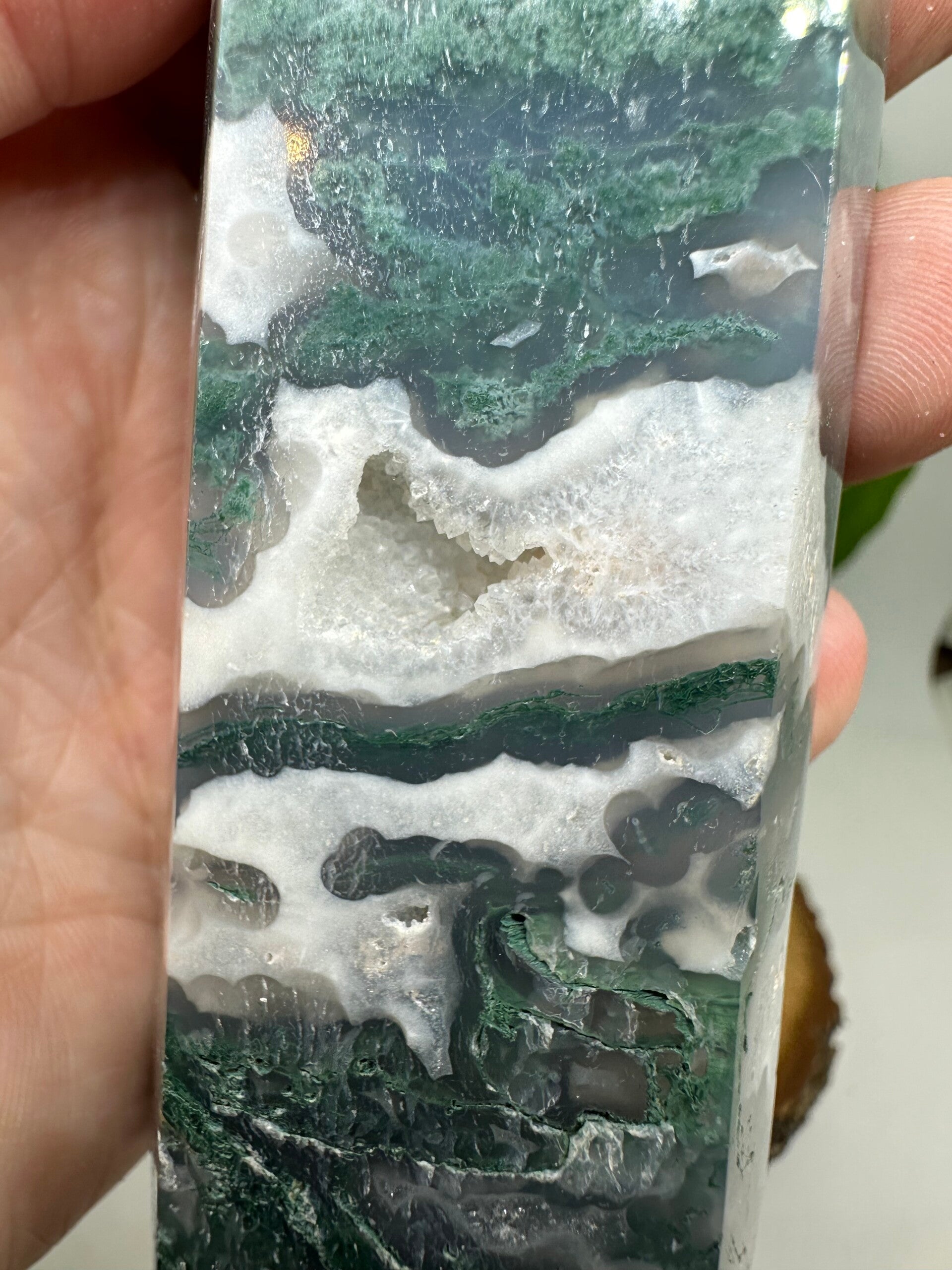 Mosagaat toren. 500 gram en 17,5 centimeter hoog. Je ontvangt het stuk van de foto.