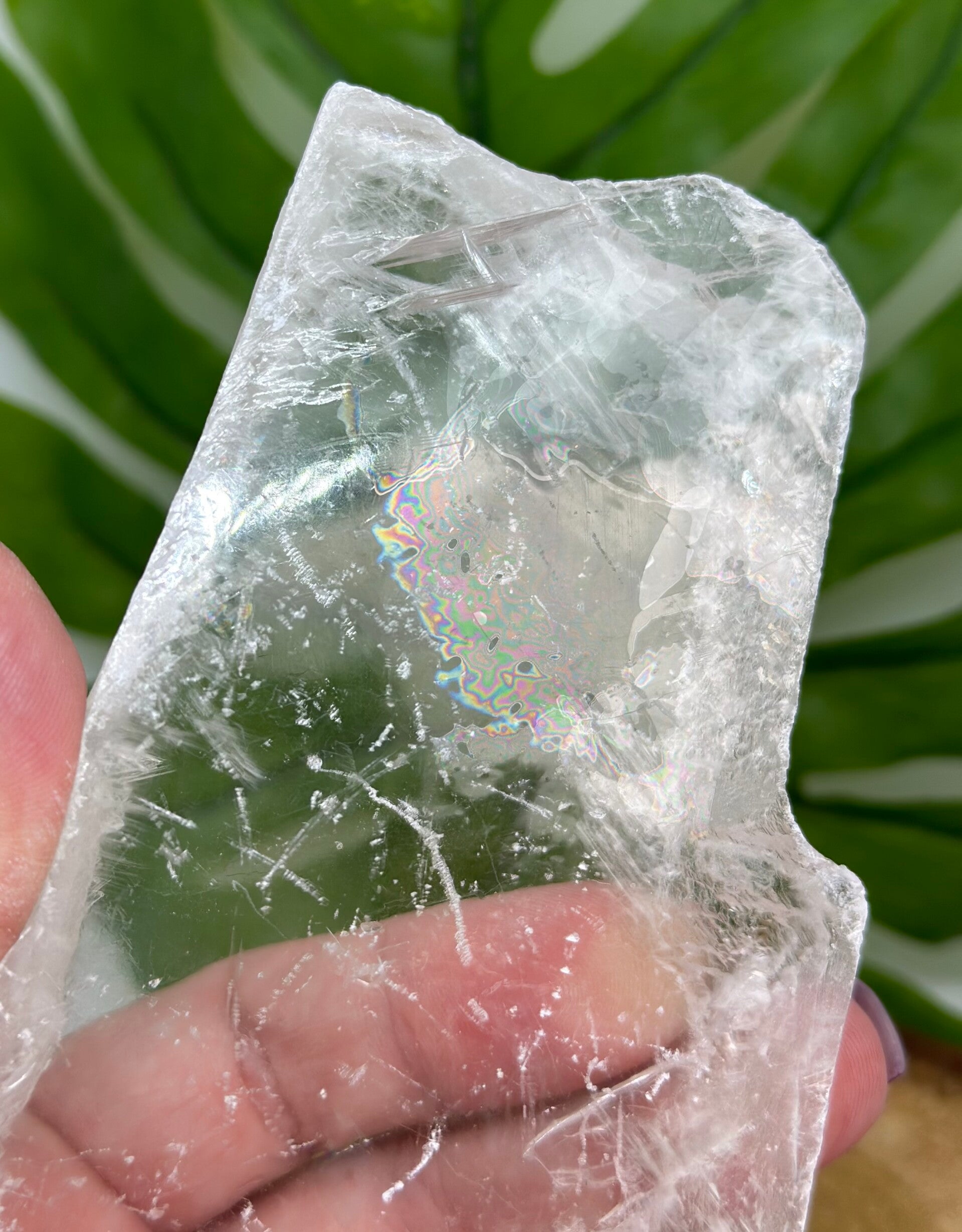 Half ruw half geslepen stuk Seleniet. Ook wel mariaglas. Vol met regenbogen. 270 gram en 15 centimeter breed. Je ontvangt het stuk van de foto.