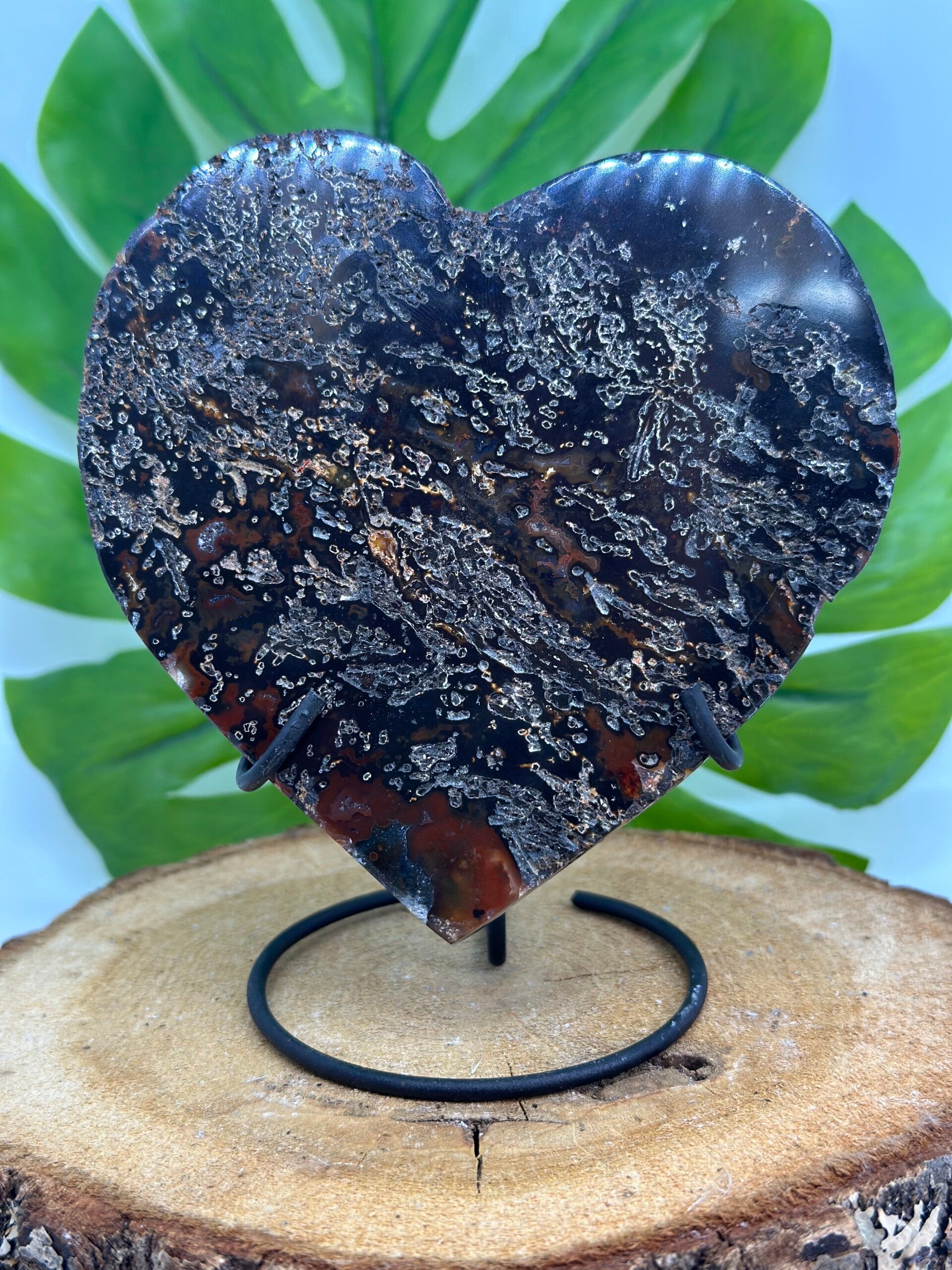 Hart van Agaat op standaard. 235 gram en 12,5 centimeter hoog. Je ontvangt het hart van de foto.