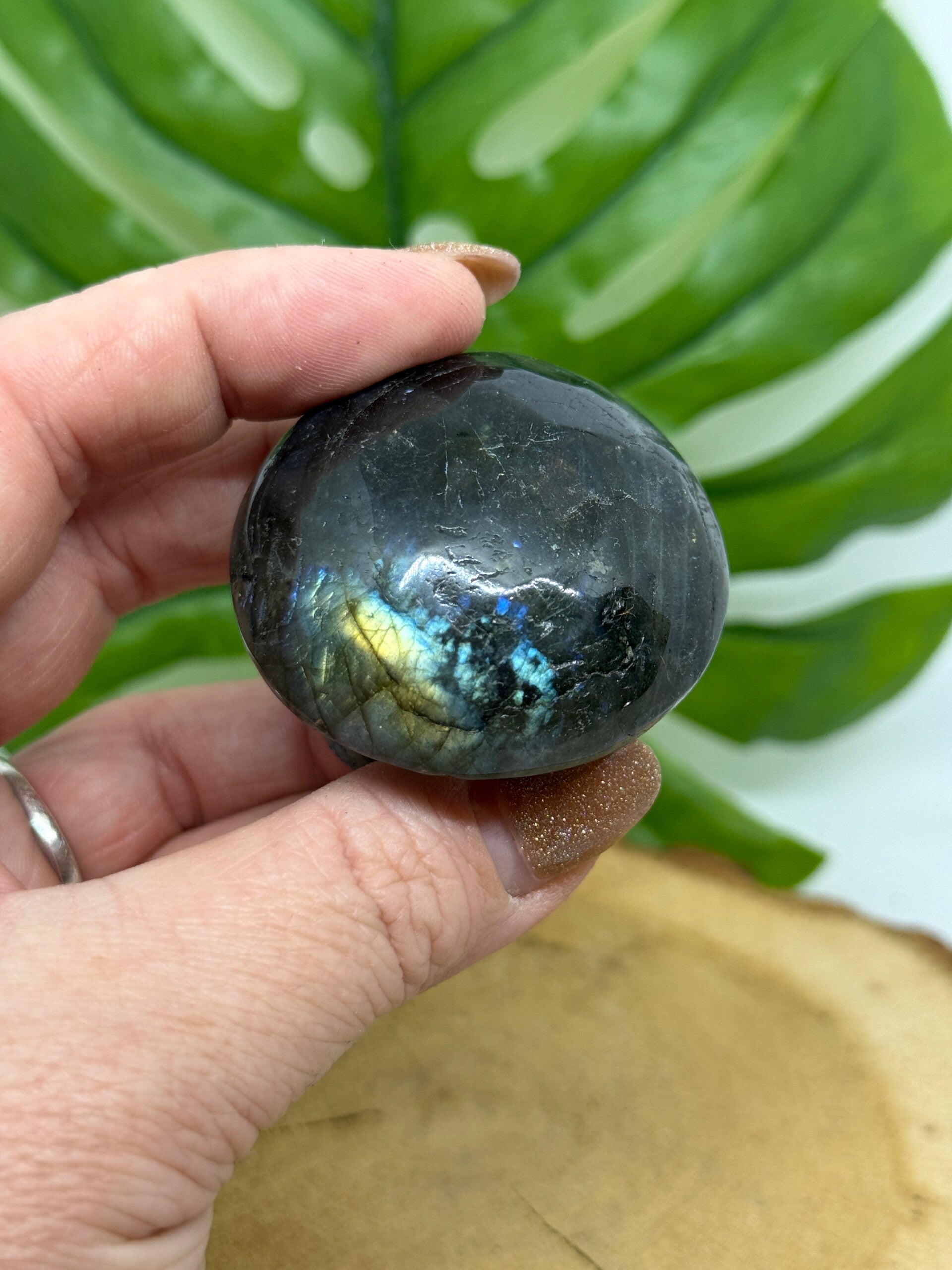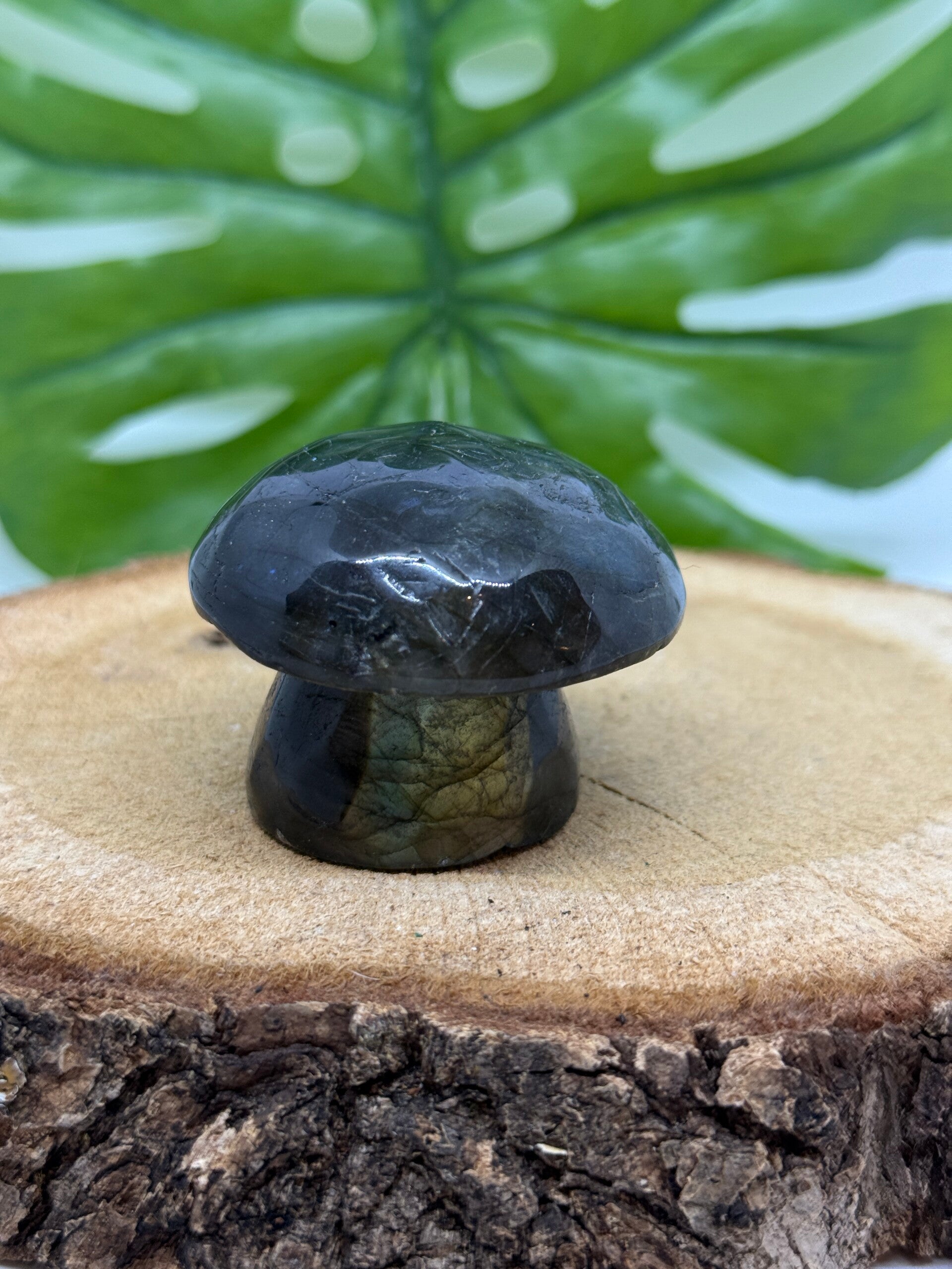 Paddestoel van Labradoriet met flash. 4 centimeter breed en 99 gram. Je ontvangt het item van de foto.