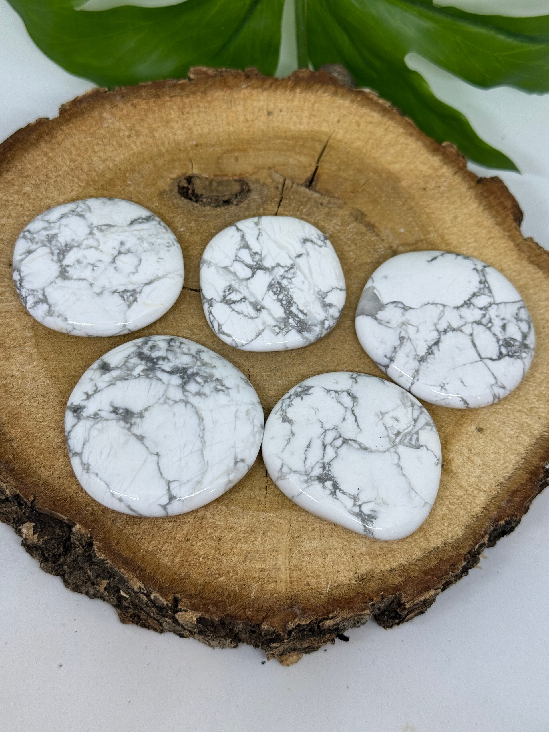 Platte palmsteen van Howliet. Ongeveer 4,5 centimeter diameter. Willekeurig gekozen.
