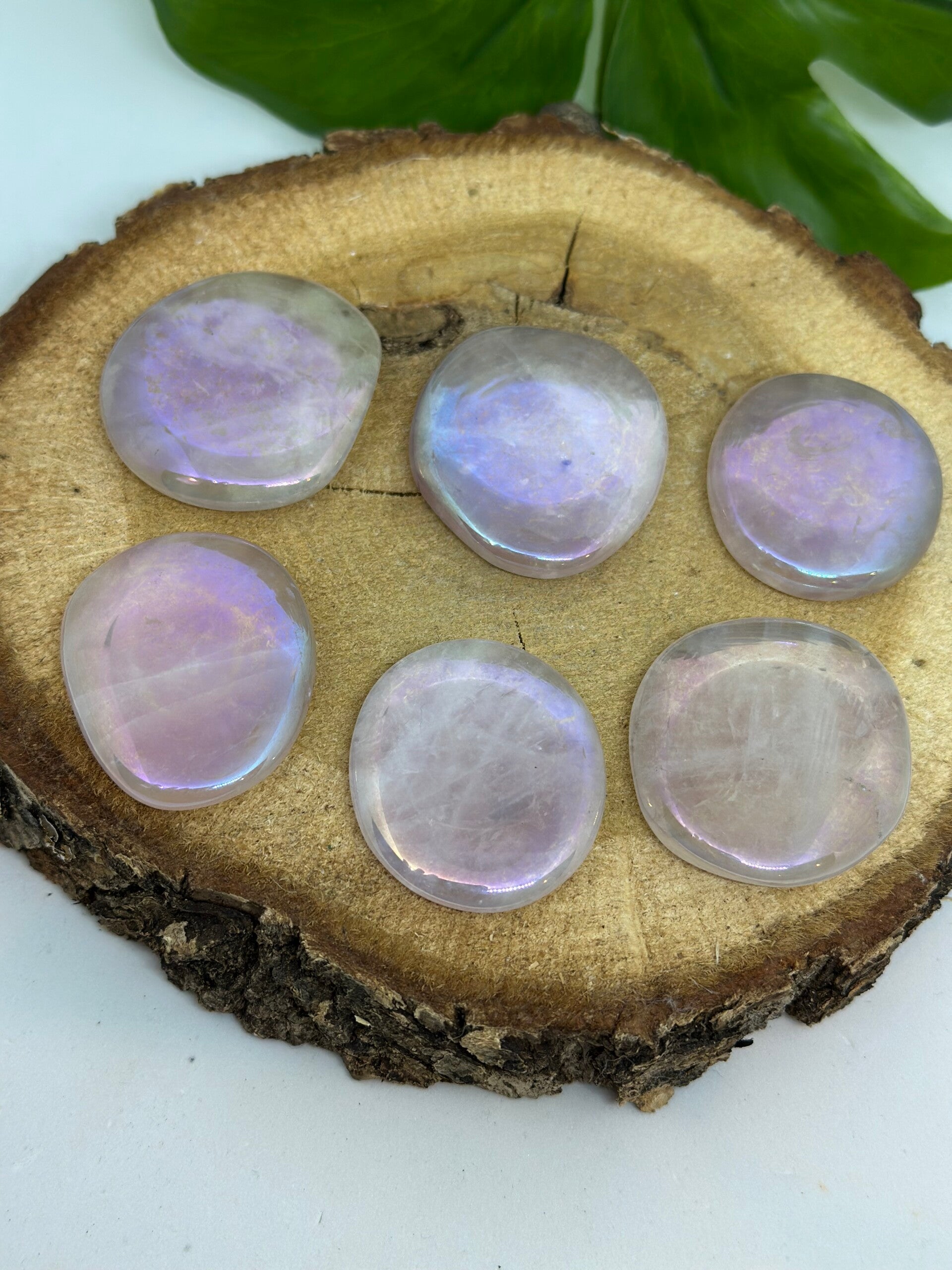 Palmetten van Rozenkwarts met aura coating. Let op! De aura coating is niet natuurlijk. Willekeurig gekozen.