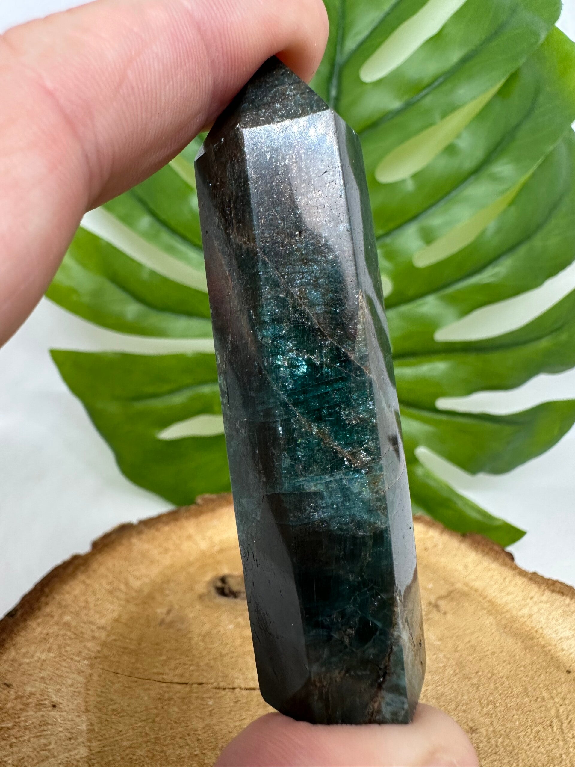 Punt van Apatiet met zilveren flash. Diep donkerblauwe punten. 9 centimeter hoog en ongeveer 86 gram. Willekeurig gekozen.