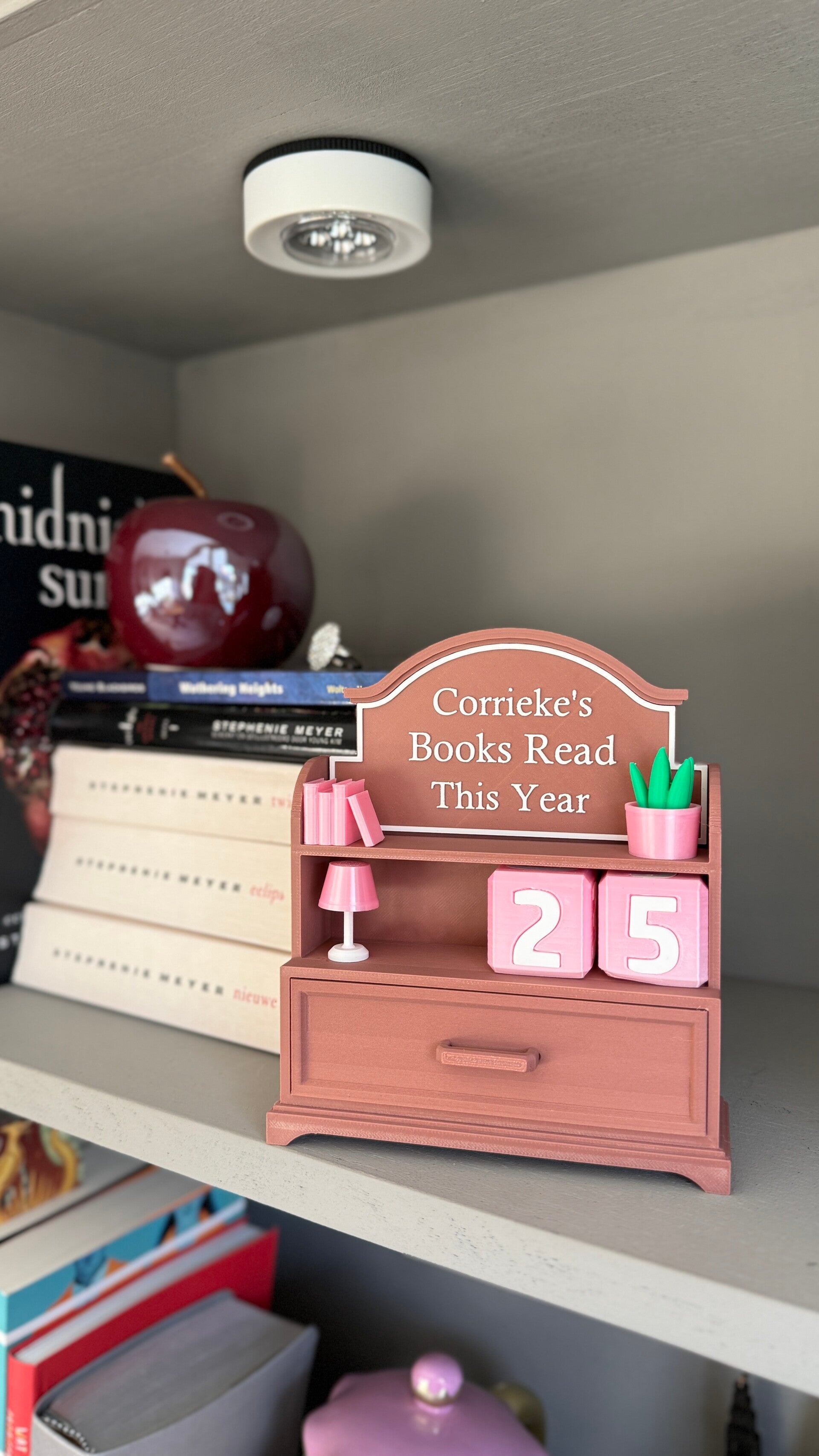 Ben jij een echte 'bookstagrammer' of wil je simpelweg op een stijlvolle manier bijhouden hoeveel boeken je dit jaar verslindt? Dit handgemaakte, 3D-geprinte mini-boekenkastje is de perfecte manier om jouw voortgang te vieren!